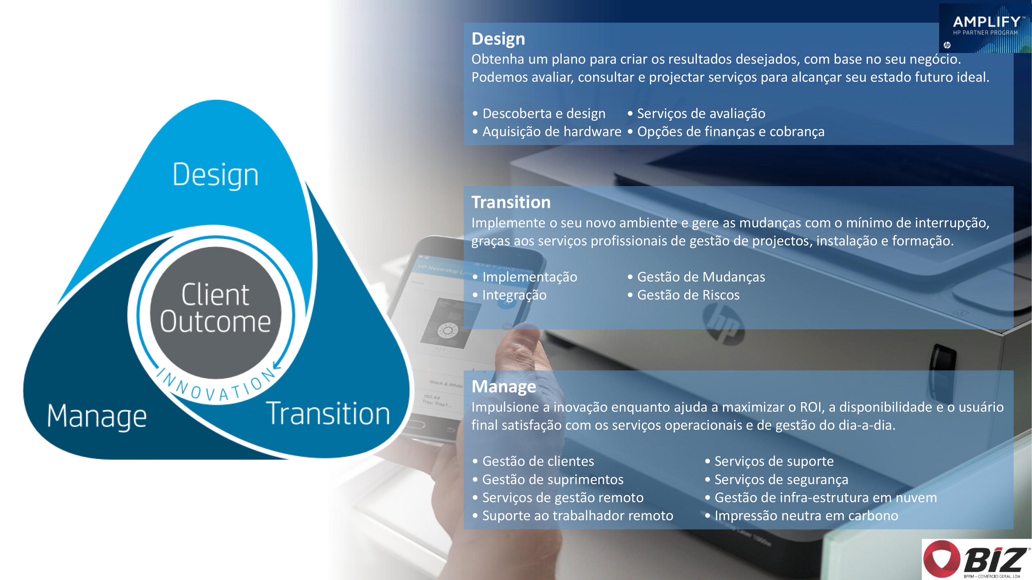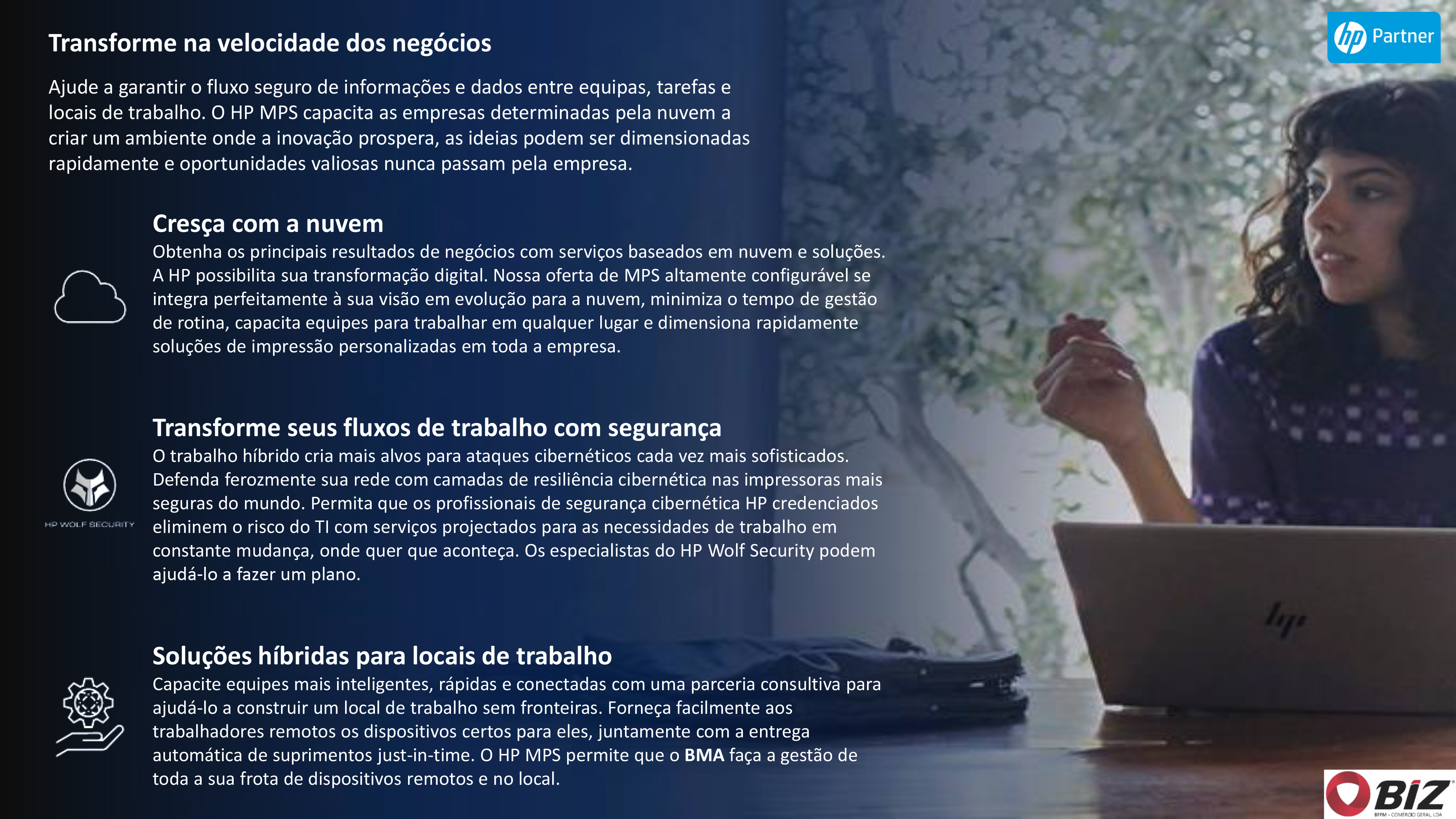Confiar na BIZ/HP como um consultor confiável para entregar serviços que aumentam a eficiência operacional, diminuir custos e permitir que BMA se concentre em resultados de negócios. A BIZ/HP fornece serviços e consultoria especializada que BMA precisa para optimizar seu ambiente de impressão, melhorar a segurança de impressão, aumentar os negócios inteligência e muito mais.